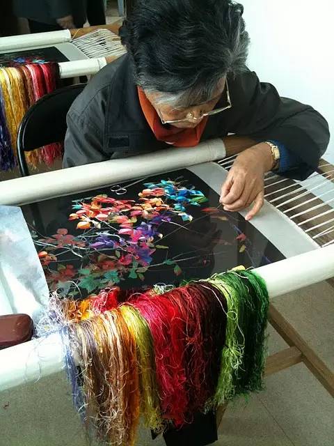刺绣分丝线刺绣和羽毛刺绣两种。就是用针将丝线或其他纤维、纱线以一定图案和色彩在绣料上穿刺,以绣迹构成花纹的装饰织物。它是用针和线把人的设计和制作添加在任何存在的织物上的一种艺术。刺绣是中国民间传统手工艺之一,在中国至少有二三千年历史。刺绣的技法有:错针绣、乱针绣、网绣、满地绣、锁丝、纳丝、纳锦、平金、影金、盘金、铺绒、刮绒、戳纱、洒线、挑花等等,刺绣的用途主要包括生活和艺术装饰,如服装、床上用品、台布、舞台、艺术品装饰。刺绣,古代称之为针绣,是用绣针引彩线,将设计的花纹在纺织品上刺绣运针,以绣迹构成花纹图案的一种工艺。